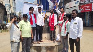 తాండూర్: స్థానిక తాండూరు అంబేద్కర్ విగ్రహం వద్ద స్వతంత్ర సమరయోధుడు ,విప్లవకారుడు భగత్ సింగ్ వర్ధంతి సందర్భంగా చిత్రపటానికి పూలమాలలు వేసి నివాళులు అర్పించడం జరిగింది. ఈ సందర్భంగా CITU జిల్లా ఉపాధ్యక్షులు కే శ్రీనివాస్ మరియు PDSU జిల్లా అధ్యక్షుడు పి శ్రీనివాస్ లు మాట్లాడుతూ స్థానిక తాండూర్ పట్టణంలో భగత్ సింగ్ యొక్క విగ్రహాన్ని ఏర్పాటు చేయాలని డిమాండ్ చేయడం జరిగింది. రవి అస్తమించని బ్రిటిష్ సామ్రాజ్యాన్ని గడగడలాడించి, ఢిల్లీ నగర పురవీధుల్లో ఎర్రకాగితాలను ఎదజల్లుతూ.. ఇంక్విలాబ్ వర్ధిల్లాలి అనే నినాదాలతో దిక్కులుపిక్కటిల్లేలా గర్జిస్తూ, దేశ స్వాతంత్య్రం పార్లమెంట్ లో పొగబాంబులను విసిరి, 23ఏండ్ల వయస్సులోనే చిరునవ్వుత్ ఉరికొయ్యలపై ఉయ్యాల లూగిన విప్లవ యువ కిశోరాలు షహిద్ భగత్ సింగ్, రాజగురు, సుఖ్ దేవ్ లని, వారి స్ఫూర్తి, పోరాట చైతన్యాన్ని నేటి యువత ఆదర్శంగా తీసుకోవాలని, దేశ స్వాతంత్రం కోసం, అణిచివేత, దోపిడి, దౌర్జన్యాలకు, సామ్రాజ్యానికి వ్యతిరేకంగా నిరంతర పోరాట స్ఫూర్తితో సాగిన భగత్ సింగ్, రాజగురు, సుఖదేవుల స్ఫూర్తితో నేటి పాలకులు అనుసరిస్తున్న ప్రజా వ్యతిరేక విధానాలను యువత తిప్పికొట్టాలని పిలుపునిచ్చారు. ప్రపంచ స్థాయిలో చేగువేరా, ఫైడల్ కాస్ట్రో లాంటి విప్లవ వీరులు అమెరికన్ సామ్రాజ్యవాదులపై పోరాడి అమరులయ్యారని, అదే కోవలో భారత ఉపఖండంలో భగత్ సింగ్, రాజగురు, సుఖదేవ్ లు బ్రిటిష్ సామ్రాజ్యవాదుల చేతిలో ఉరి తీయబడినారని, భగత్ సింగ్ తన సహచరులు కలలుగన్న సార్వభౌమాధికారం, లౌకికవాదం, సోషలిజం కోసం పోరాడుతున్న ఎందరికో గొప్ప స్ఫూర్తినిస్తుందని వారు అన్నారు. దేశంలో మోడీ ప్రభుత్వం కుహానా దేశభక్తిని బట్టబయలు చేస్తూ అమెరికా అధ్యక్షుడు ట్రంప్ అమెరికాలో నివసిస్తున్న భారత ప్రజలపై అనుసరించే దుశ్చర్యలకు వ్యతిరేకంగా, భగత్ సింగ్ స్ఫూర్తితో అమెరికా సామ్రాజ్యవాదానికి వ్యతిరేకంగా ఉద్యమించాలని పిలుపునిచ్చారు. భగత్ సింగ్, రాజగురు, సుఖదేవ్ ల పోరాట స్ఫూర్తిని,పోరాట చైతన్యాన్ని నేటి యువత అందిపుచ్చుకోవాలని అన్నారు. యువత ప్రశ్నించకుండా వారి మెదళ్లపై సామ్రాజ్యా వాద విష సంస్కృతి, మద్యం, డ్రగ్స్, గంజాయి లాంటి మత్తుపదార్థాలను బలవంతంగా రుద్దారని అన్నారు. ఈ ప్రమాదం నుండి యువత బయటకు రావాలని అన్నారు, దేశంలో అన్నివర్గాల ప్రజలకు విద్య,వైద్యం, ఉపాది కల్పించడం కోసం పోరాటాలు నిర్వహించాలని అన్నారు. ఈ కార్యక్రమంలో సిపిఎం నాయకులు జైపాల్,వెంకటేష్,సురేష్ తదితరులు పాల్గొన్నారు